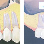 Делаем разрез в пределах кератинизированной десны. Скелетируем кость, видим следующее: