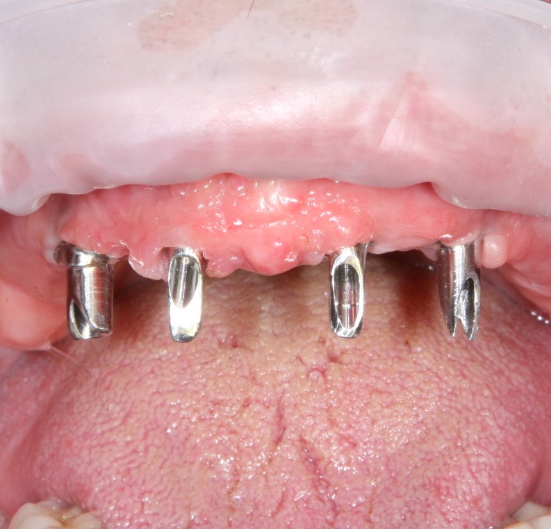 Конечно, наличие трансгингивальной части накладывает серьезные ограничения по установке трансгингивальных имплантов. В частности, их почти не используют в эстетически значимой зоне, они очень требовательны к правильному позиционированию и биотипу слизистой оболочки. Зато идеальны для фиксации условно-съемных конструкций при тотальном отсутствии зубов: