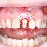 Если временную коронку установить невозможно (низкая стабильность имплантата или боковой зуб), можно ограничиться формирователем десны, а для эстетически значимой зоны сделать временный протез с опорой на соседние зубы: