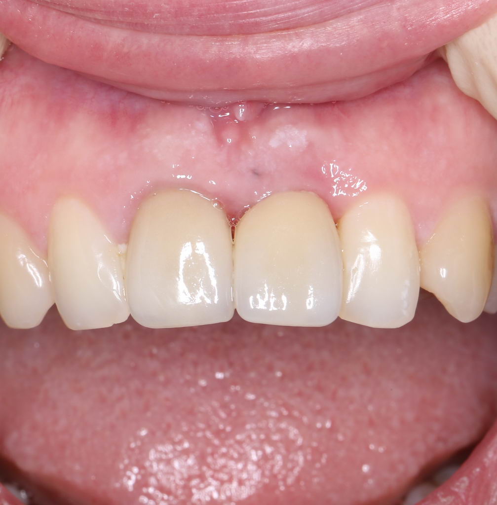 В некоторых случаях можно провести гингивопластику и формирование десны одномоментно с отсроченной имплантацией. Изменение биотипа десны в сторону её утолщения — хороший способ не только добиться лучшей эстетики, но и снизить риски развития периимплантита.
