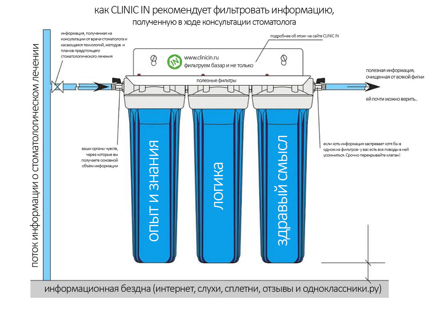 Другое дело, что информация бывает разной. В век интернета, когда каждый суслик резко становится агрономом и организует мастер-класс по этому поводу, мало находить информацию — её нужно уметь обрабатывать и фильтровать. Мы, кстати, много раз про это писали и показывали вам картинку про фильтры. Рекомендуем пользоваться ими каждый раз, дабы в голове не возникал информационный хаос.