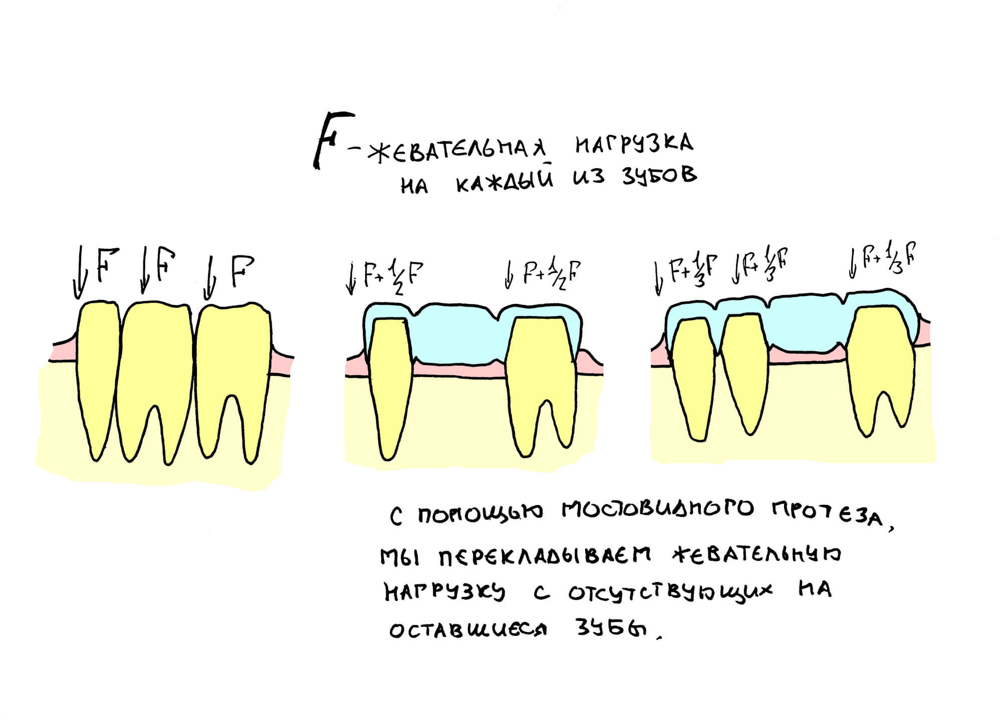 Однако, даже идеально подготовленные зубы, на который зафиксирован идеально изготовленный мостовидный протез, оказываются перегруженными — если раньше они получали жевательную нагрузку только с собственной поверхности, то сейчас несут её и за отсутствующие зубы.