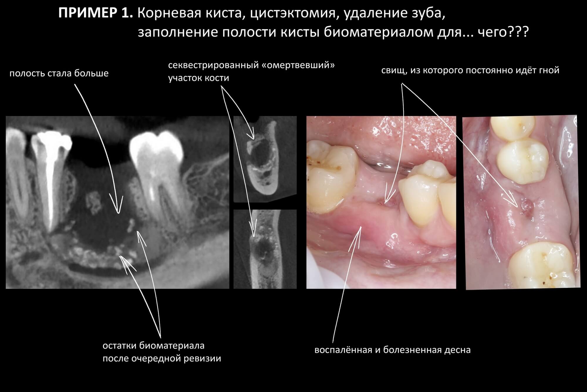 Пример 1. Почему нельзя использовать биоматериалы в хирургии зубных кист?