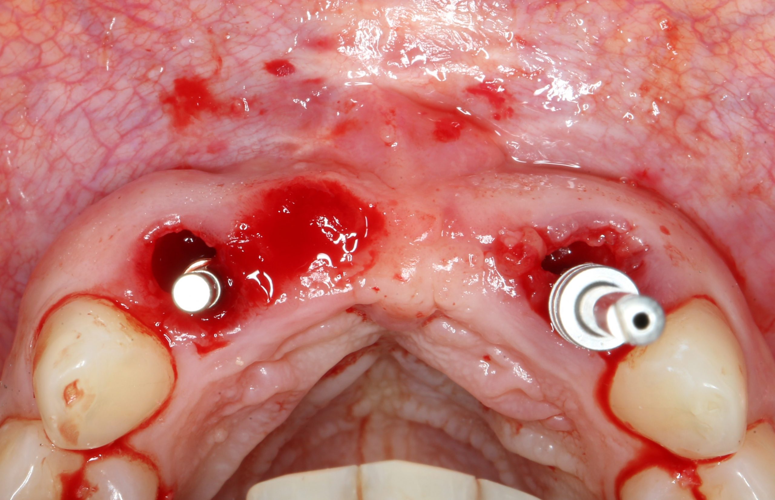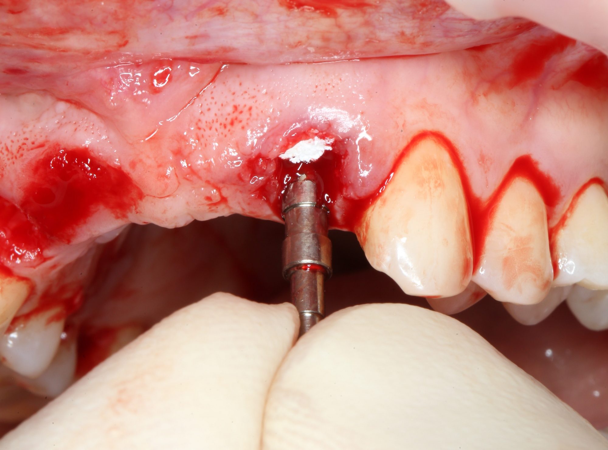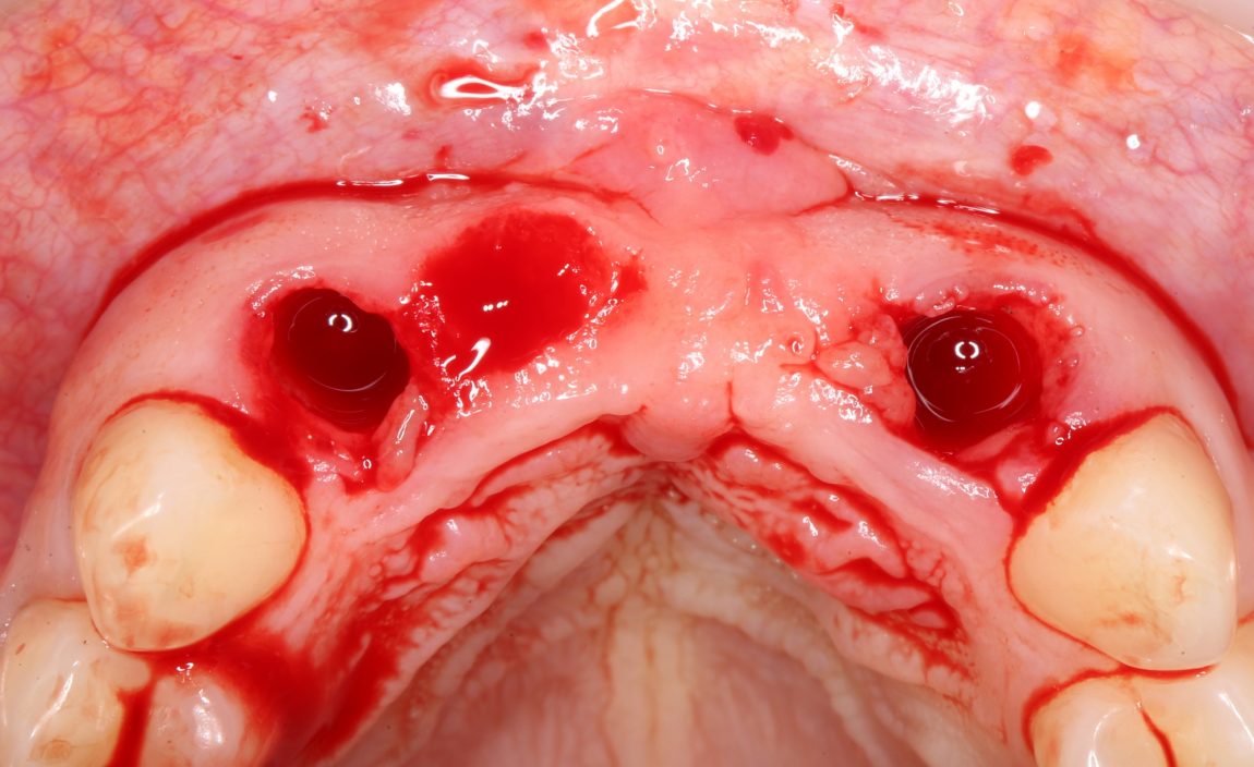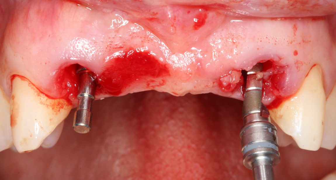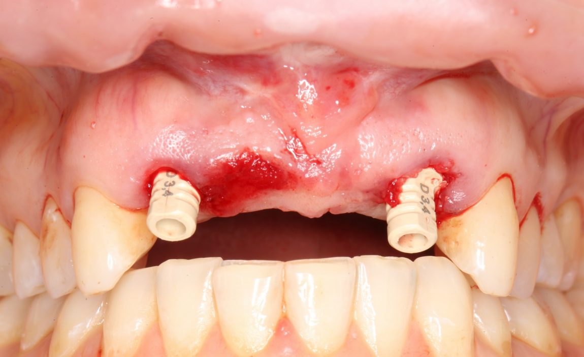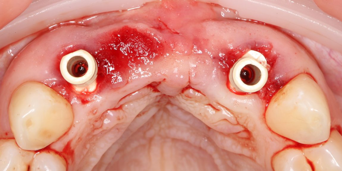 Убедившись в том, что имплантаты стоят правильно, крутящий момент достаточный, мы переходим к следующему шагу — пластике десны.