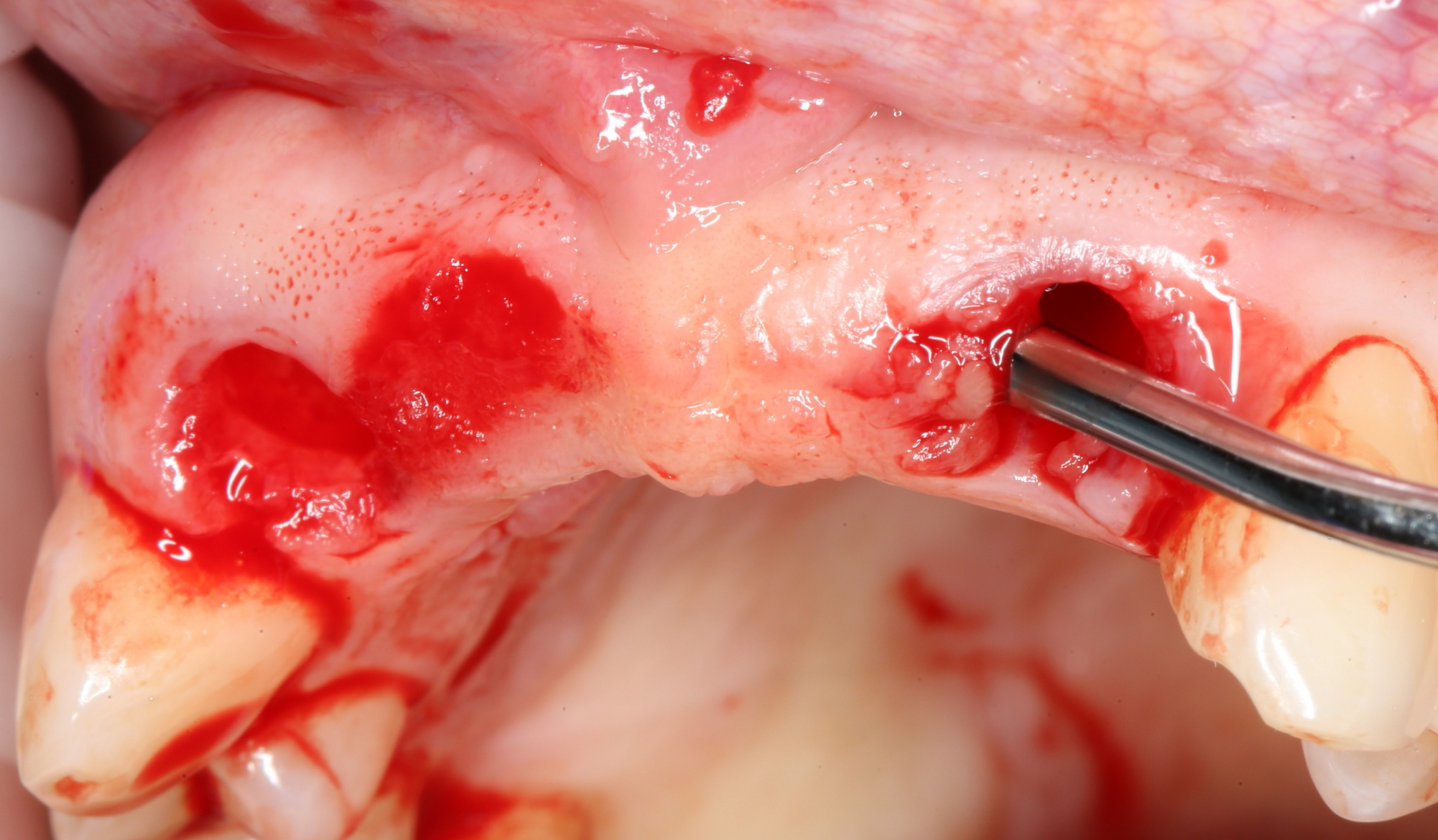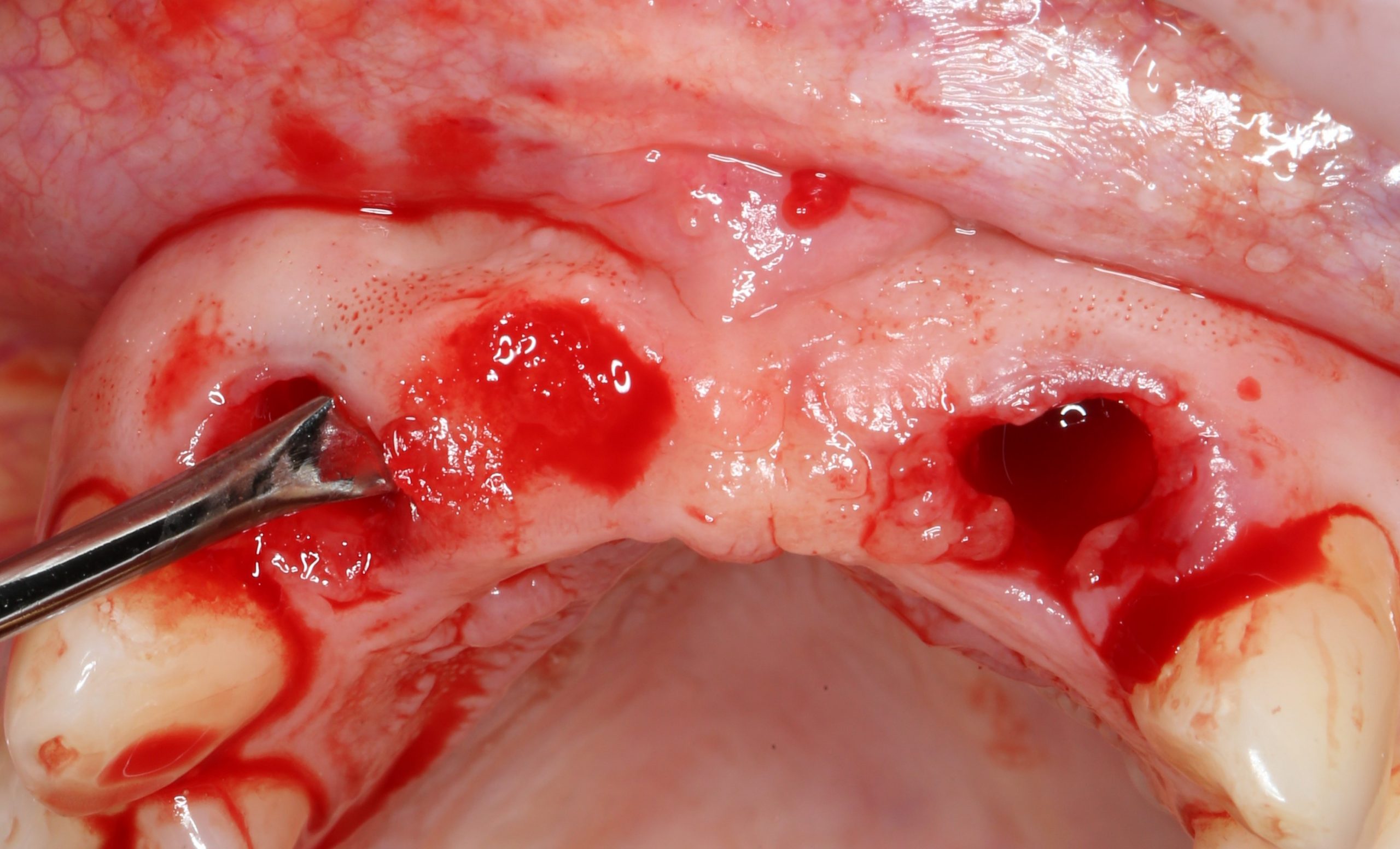 Вы уже догадались, что мы не планируем дополнительных разрезов — весь объём работы мы проведём через лунки зубов. Таким образом, мы снизим травматичность нашей операции и, как следствие, риск возможных осложнений.