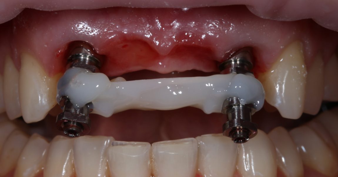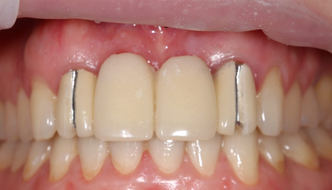 Напомним, что еще до операции мы сделали временный протез с опорой на боковые резцы: