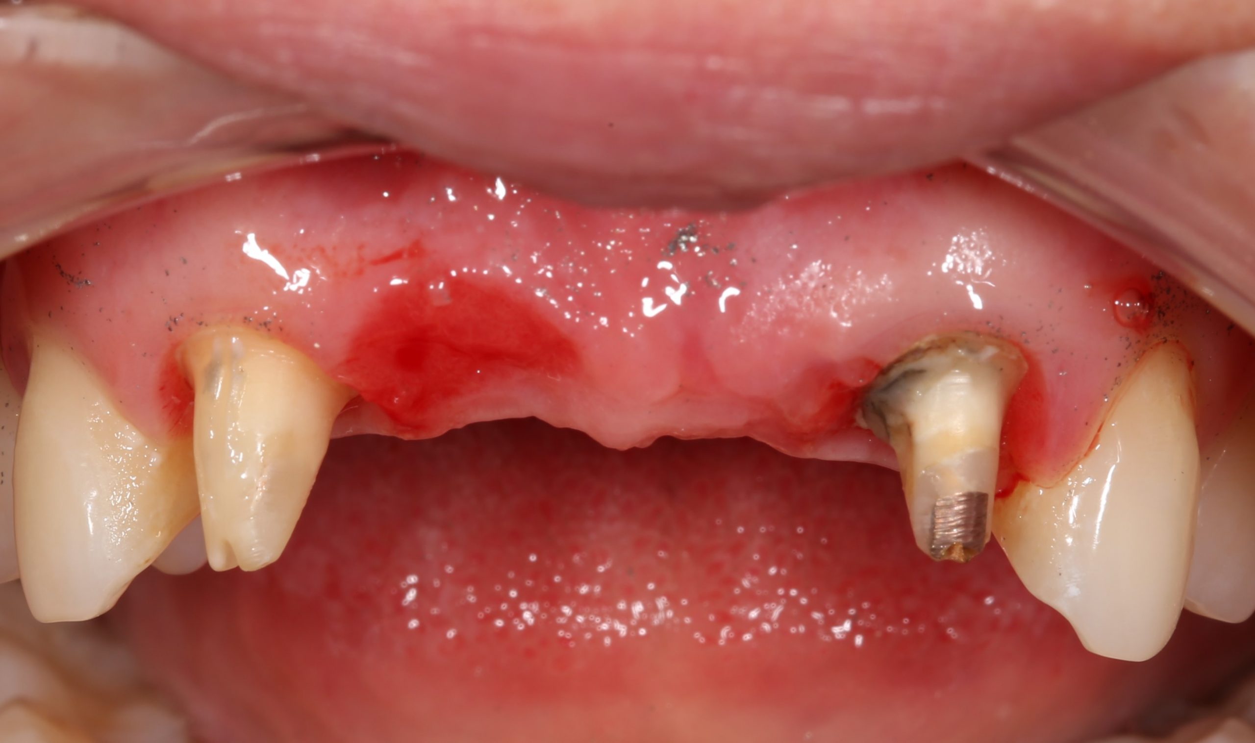 К этому моменту временный протез и область имплантации выглядят следующим образом: